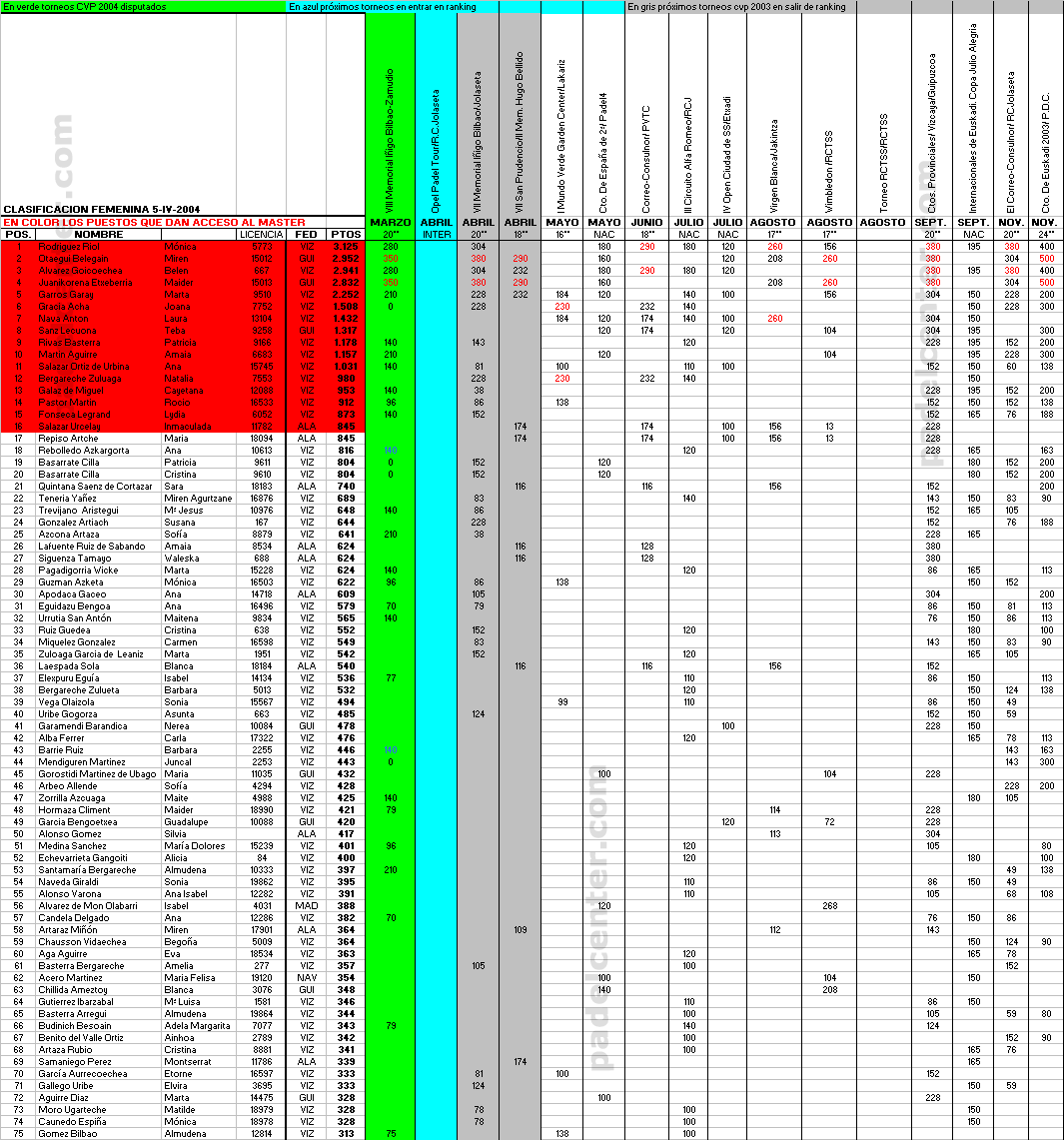 Ranking femenino 2004