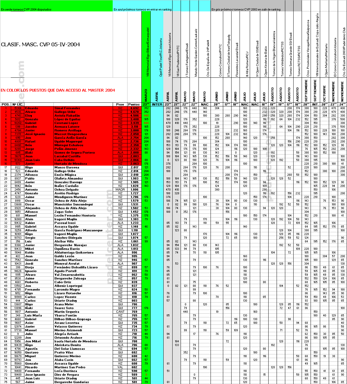 Ranking del Circuito Vasco en Padelcenter.com