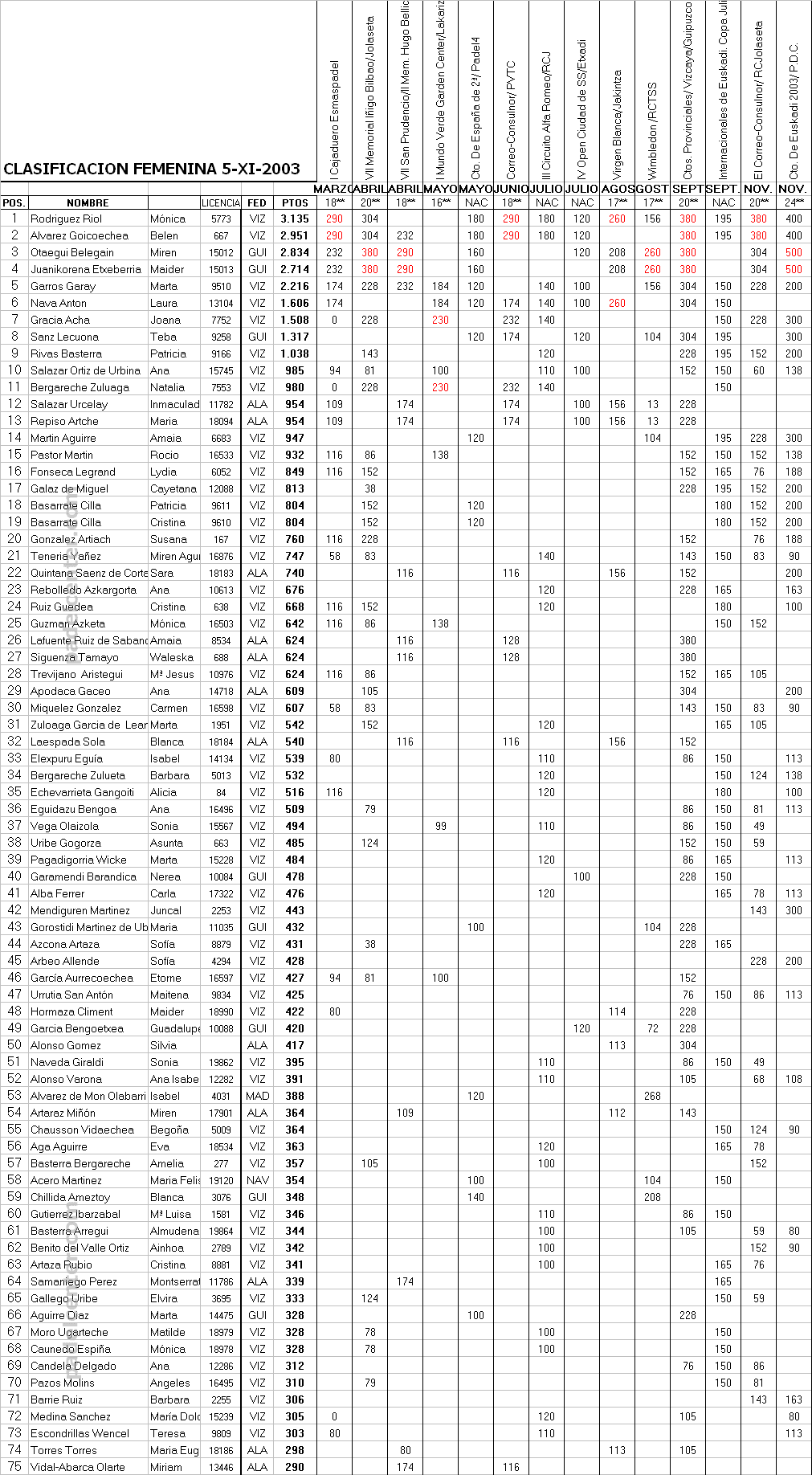 Ranking femenino 2003