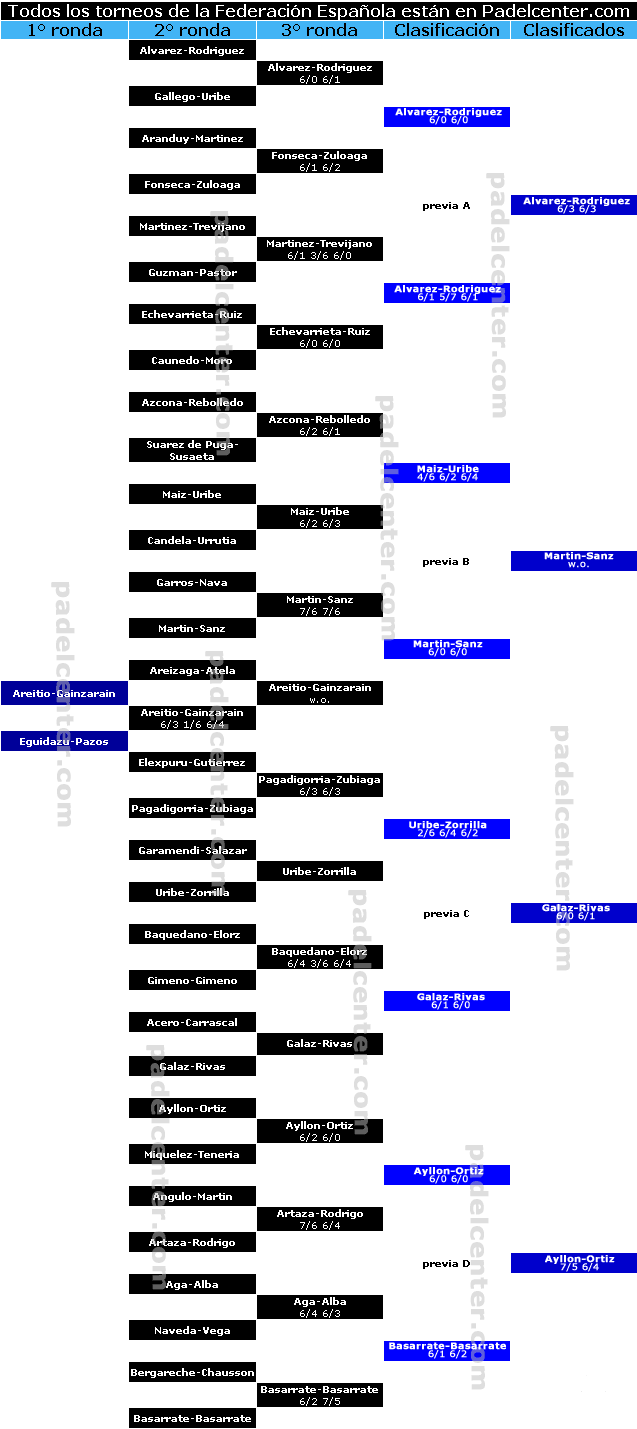www.padelcenter.com ALVAREZ RODRIGUEZ GALLEGO URIBE ARANDUY MARTINEZ FONSECA ZULOAGA MARTINEZ TREVIJANO GUZMAN PASTOR ECHEVARRIETA RUIZ CAUNEDO MORO AZCONA REBOLLEDO SUAREZ DE PUGA SUSAETA MAIZ URIBE CANDELA URRUTIA GARROS NAVA MARTIN SANZ AREIZAGA ATELA AREITIO GAINZARAIN ELEXPURU GUTIERREZ PAGADIGORRIA ZUBIAGA GARAMENDI SALAZAR URIBE ZORRILLA BAQUEDANO ELORZ GIMENO GIMENO ACERO CARRASCAL GALAZ RIVAS AYLLON ORTIZ MIQUELEZ TENERIA ANGULO MARTIN ARTAZA RODRIGO AGA ALBA NAVEDA VEGA BERGARECHE CHAUSSON BASARRATE BASARRATE