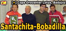 (Badajoz, España. 13/11/2007. Especial para Padelcenter.com) Los Argentinos Carlos Santachita y Claudio Bobadilla afincados en la ciudad de Mérida se adjudicaron este fin de semana pasado la 12º Copa de Extremadura de Padel 'Trofeo Orocenter/Lotus' desarrollada en el Club El Corzo de la Ciudad de Badajoz, al vencer en la final al Argentino Marcelo Quintana y al Español Gonzalo Correa (Badajoz) por 7-5 6-4.